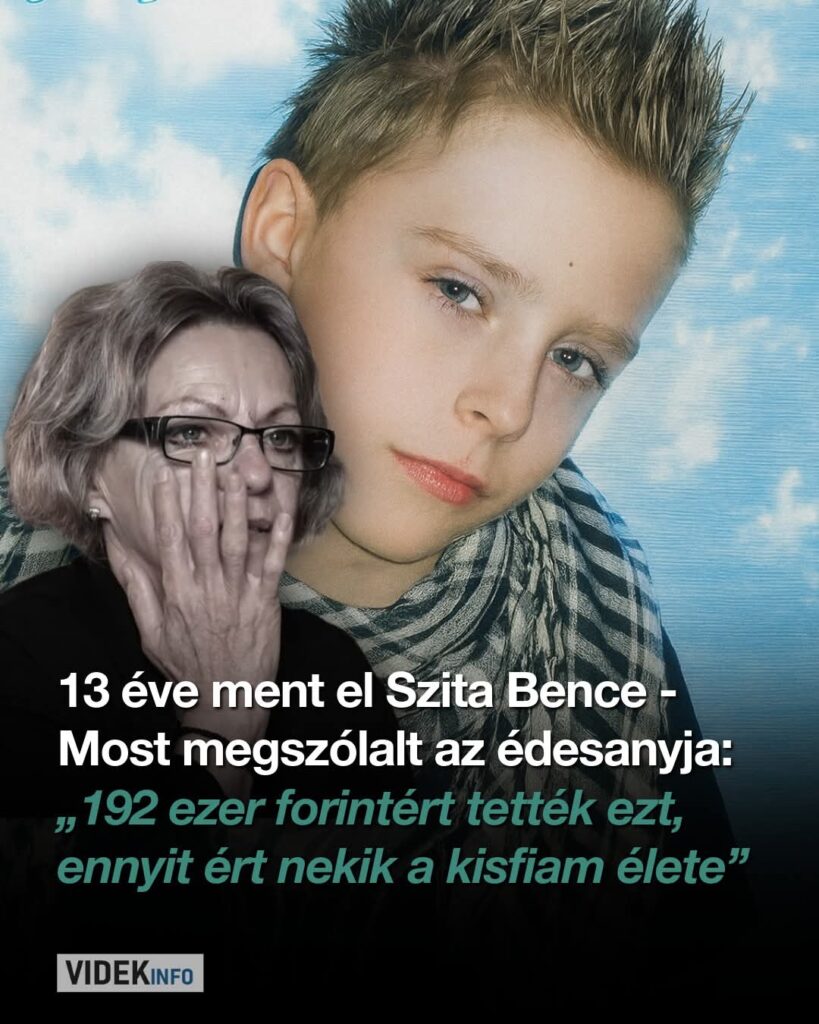 ennyit ért nekik a kisfiam élete.”Szita Szilvia számára örökké beleégett 2012. október 29-e. A nap, amikor kisfiát, Szita Bencét – mindössze 11 évesen – brutális kegyetlenséggel megölték. A bestiális tett elkövetői: a mostohaanya felbujtására két hajléktalan férfi, akik mindössze 192 ezer forintért vállalták a gyilkosságot.