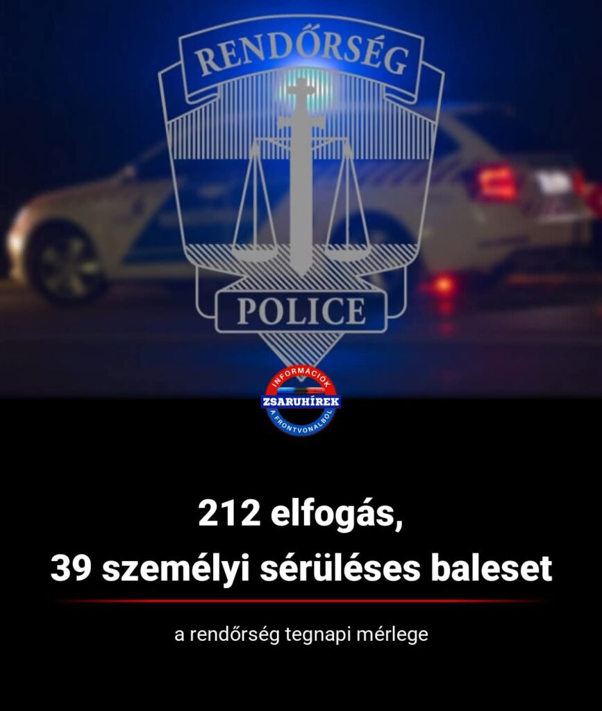 Magyarország területén a 2026. február 26-án összesen 39 személyi sérüléssel járó közúti közlekedési balesetnél intézkedtek a hatóságok. A balesetek kimenetelét tekintve szerencsére halálos tragédia nem történt: 12 eset súlyos, míg 27 könnyű sérüléssel végződött.A szolgálatot ellátó állomány összesen 212 személyt fogott el.65 főt bűncselekmény elkövetésén értek tetten.44 személyt az ellenük érvényben lévő körözés alapján kerítettek kézre.205 főt állítottak elő, közülük 84-et bűncselekmény elkövetésének gyanúja miatt.Ittas járművezetés gyanúja miatt 4 személlyel szemben intézkedtek.Biztonsági intézkedésre 87 esetben került sor.
