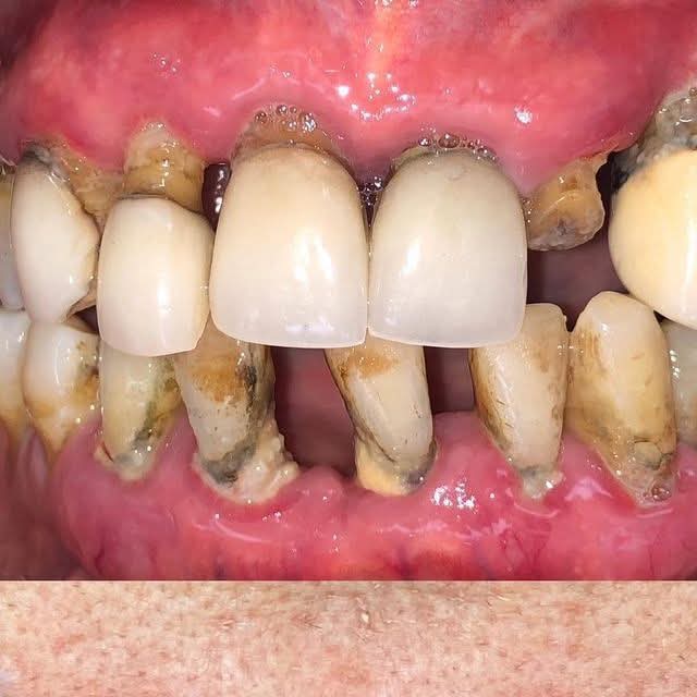 - Fogágybetegség (Paradontózis): Az íny visszahúzódik, a fogak meglazulnak és egészséges állapotukban is kihullhatnak.