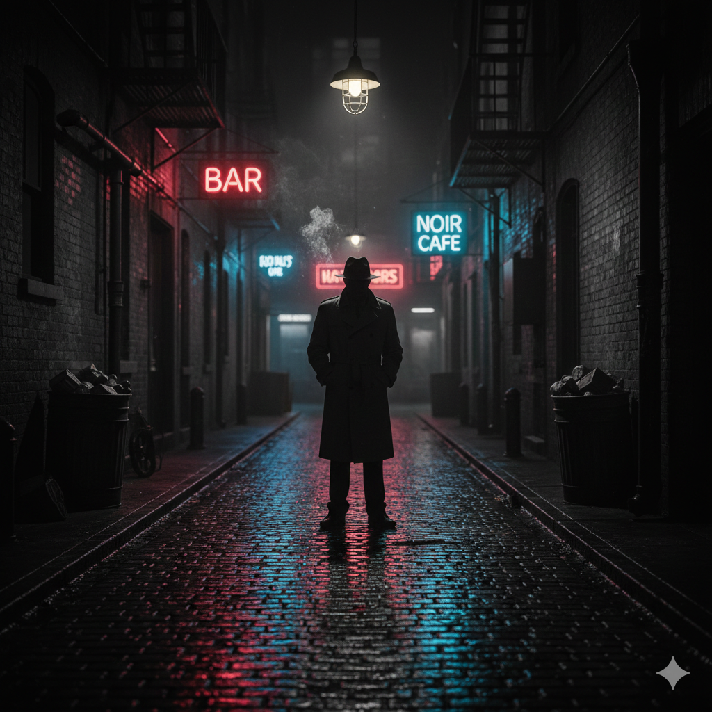 • Az ismeretlen alak: Egy hosszú kabátos, kalapos figura áll a sikátor mélyén, az arca árnyékba vész. Ki ő? Egy magánnyomozó? Egy gengszter? Egy áruló?