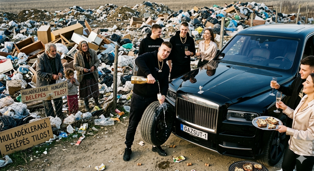 Míg az ország nagy része a megélhetésért küzd, egy csapat budapesti milliárdos csemete úgy döntött: a „kontraszt kedvéért” egy vidéki nyomortelep és szemétlerakó tőszomszédságában rendezik meg az év legdrágább kerti partiját.