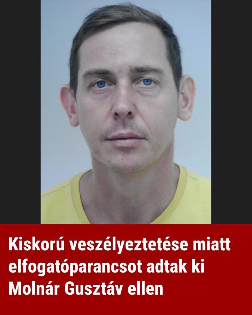 A körözést a Gödöllői Járásbíróság rendelte elA Gödöllői Járásbíróság elfogatóparancsot rendelt el Molnár Gusztáv ellen kiskorú veszélyeztetésének gyanúja miatt. Az ügyben indított körözési eljárást a Budapesti III. Kerületi Rendőrkapitányság folytatja.A hatóságok tájékoztatása szerint a 39 éves férfit jelenleg keresik, tartózkodási helye nem ismert. A rendőrség a lakosság segítségét is kéri az ügy felderítéséhez.Molnár Gusztáv 1986. október 26-án született Komáromban, magyar állampolgár.A rendőrség arra kéri azokat, akik információval rendelkeznek a férfi hollétéről, hogy személyesen jelentkezzenek a Budapesti III. Kerületi Rendőrkapitányságon a 1036 Budapest, Tímár utca 9/A. szám alatt, hívják a 06-1-430-4700-as telefonszámot, vagy tegyenek bejelentést a 112-es segélyhívón, akár névtelenségük megőrzése mellett.