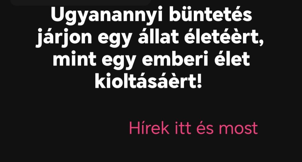 Ugyanannyi büntetés járjon egy állat életéèrt, mint egy emberi élet kioltásáèrt